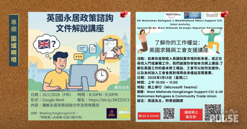 圍爐啊喂|英國永居政策諮詢文件解說講座 英國求職與工會支援講座