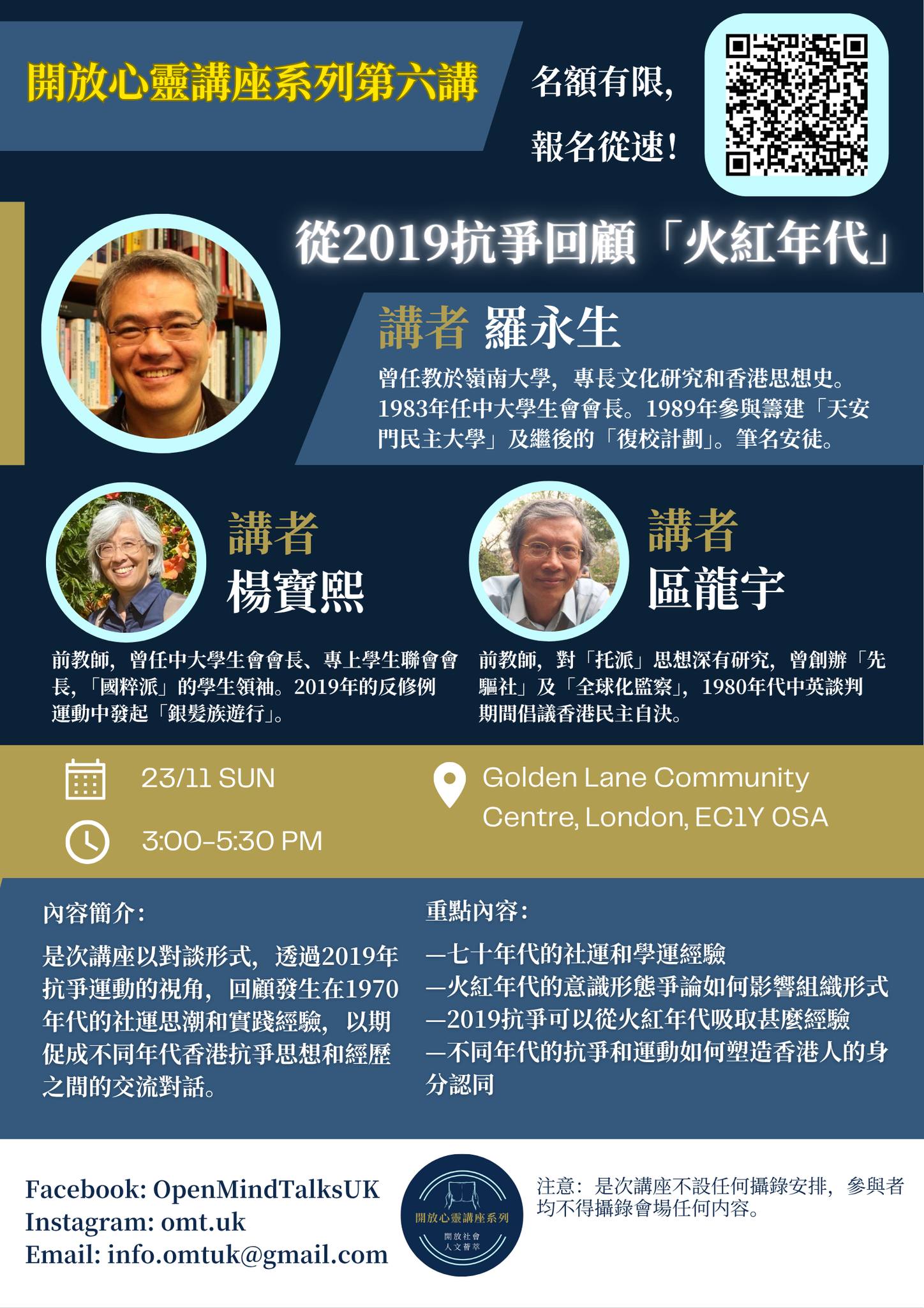 內容:以對談形式,透過2019年抗爭運動的視角,回顧1970年代社運思潮和實踐經驗,以促成不同年代香港抗爭思想和經歷之間的交流對話。