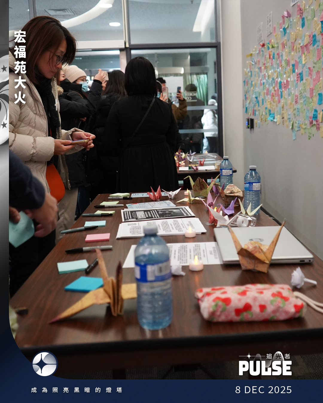 下午4時開始陸續有港人到場獻上白花致哀,並在連儂牆寫下「願逝者安息,傷者早日康復」及「還我真相」等字句。多倫多市長鄒至蕙、前立法會議員張超雄、前大埔區議員胡耀昌、周炫瑋、加拿大國會議員Ali Ehsassi及市議員Lily Cheng均到場,鄒至蕙獻花後,以中文及英文在連儂牆留下「悼亡魂 求真相 究責任」﹑「First we mourn, and then we work for change」的字句。
