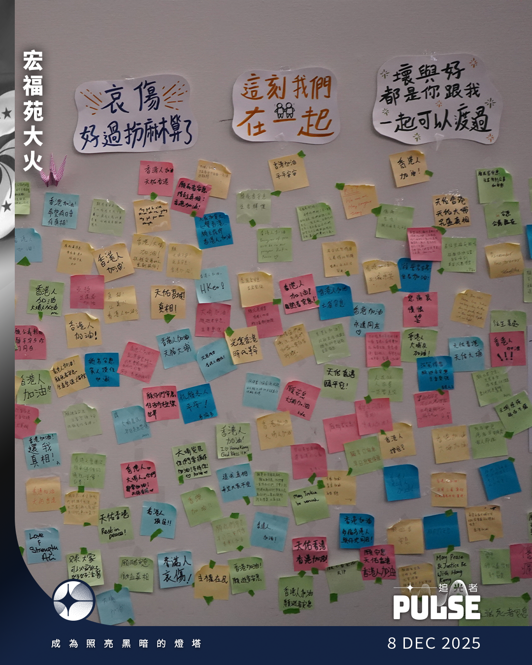「香港嘅警鐘已經無咗聲,而且係比人一路拆走。」他指民間發聲的重要性在於及時發現和解決問題,避免未來有更嚴重的災難發生,但現時不少被視為反對派的人士已流亡、坐監或噤聲,今次事件中民間自發的物資供應,甚至僅僅是發言,亦被清場和打壓,而政府早前成立的獨立委員會,亦沒有法定權力傳召證人或取得文件,難以發掘事件的真相,海外的港人可以做的工作,是為被噤言的港人發聲和傳遞訊息,令更多人知道香港的情況,相信香港仍可變得更好。