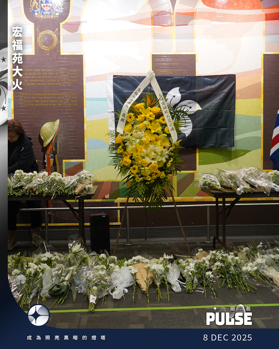 大埔宏福苑五級大火造成逾百人死亡,全球各地均有港人舉辦活動。加拿大多倫多當地時間星期六亦舉行追悼儀式,約800人參與為死者獻花及默哀,多倫多市長鄒至蕙、前立法會議員張超雄等均有到場。鄒至蕙以中文及英文在連儂牆寫下「悼亡魂 求真相 究責任」等字句,又表示希望在加拿大為無法發聲的港人出聲。張超雄則表示,「香港嘅警鐘已經無咗聲」,所謂的國家安全其實是政權安全,又籲海外港人繼續傳遞有關香港的訊息。