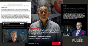 至於「重光團隊」方面,控方指黎智英是幕後主腦,透過「中間人」陳梓華指示李宇軒、劉祖廸等人,組織「全球登報」行動,請求外國向中國施壓,並為他們墊支510萬元登報宣傳。