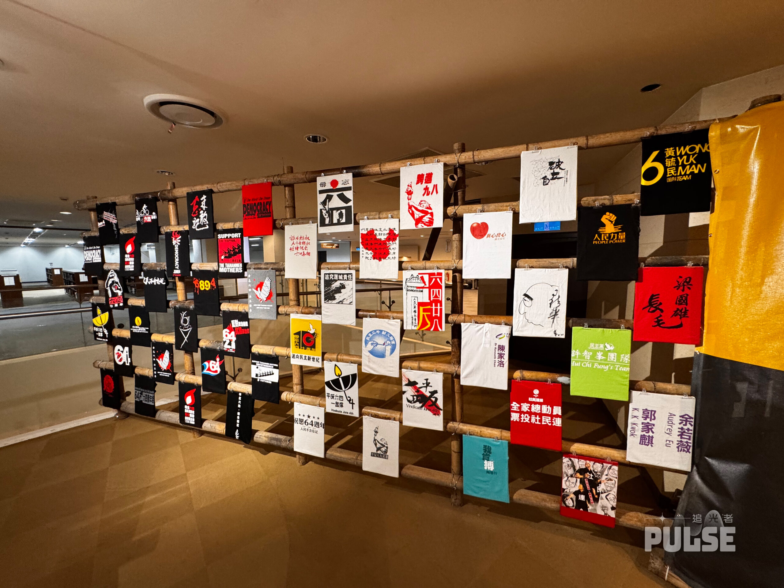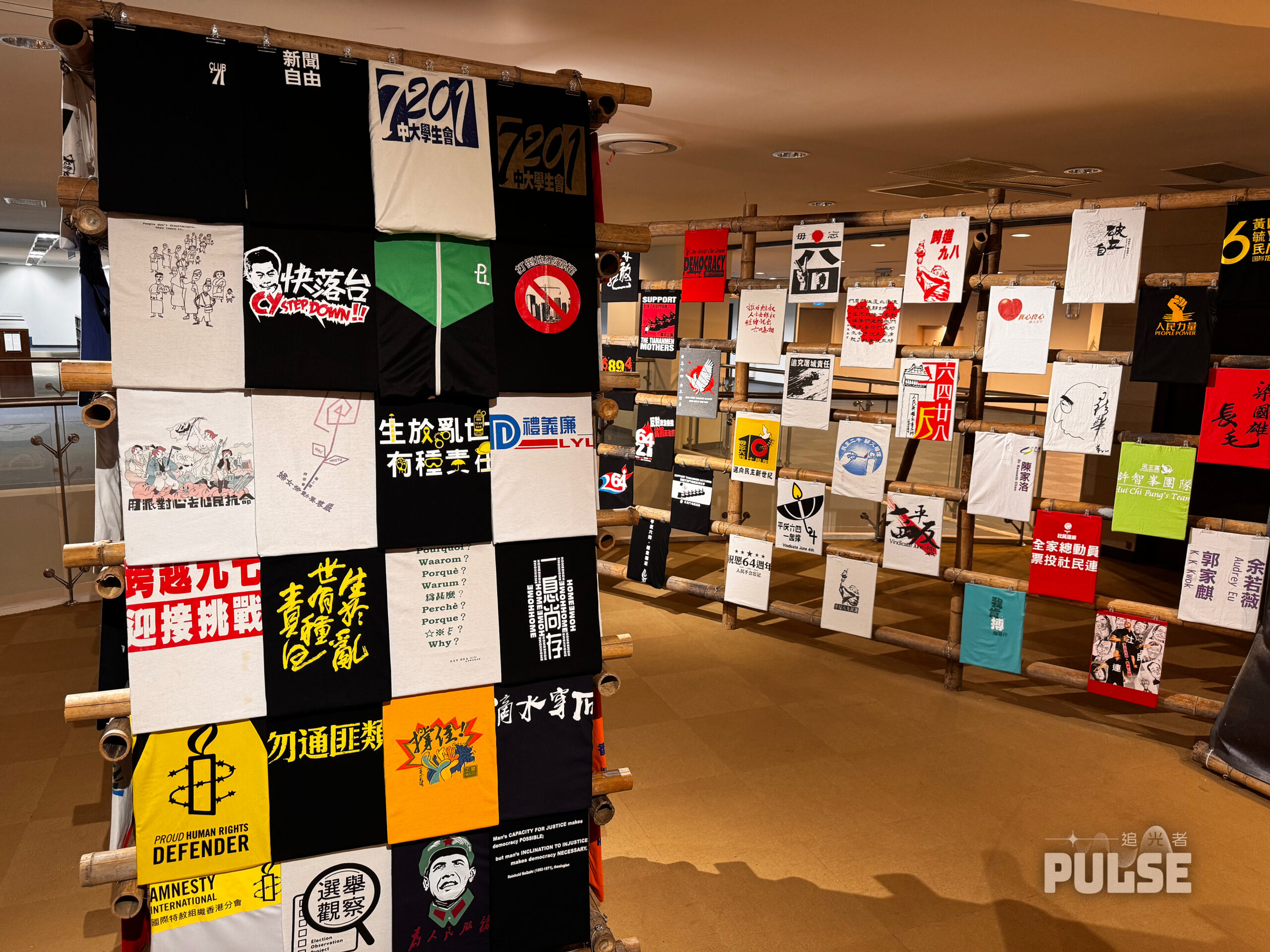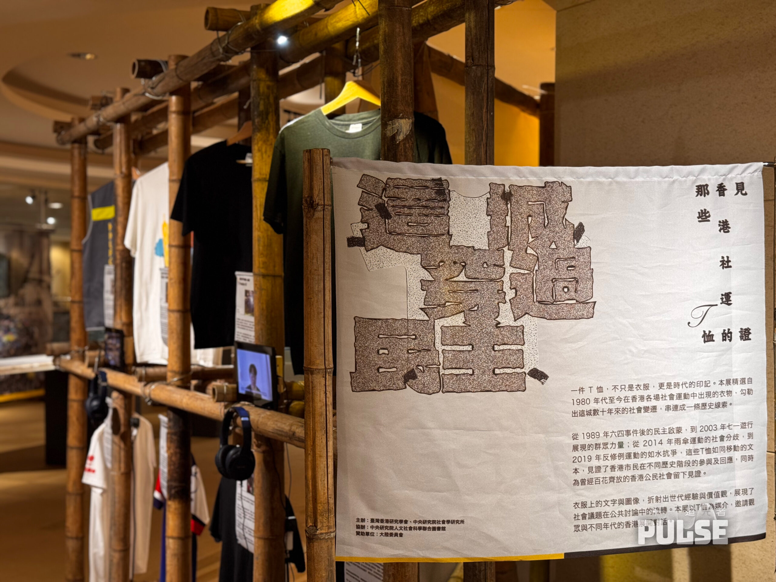 在台灣中央研究院人文社科圖書館內,一面掛滿的展牆,鋪陳出一段屬於香港的社會運動與公民抗爭歷史。這些衣服曾經被穿上街頭,沾上抗爭者的汗水,走過遊行與示威,如今改以展品身份被重新閱讀。這裏有選舉、七一、佔中、反送中以及六四的回憶,一件30多年前由黎智英於佐丹奴(Giordano)時期出產的「小平你好」T-shirt,背後承載的何止是六四故事,更是黎智英一生的轉捩點。