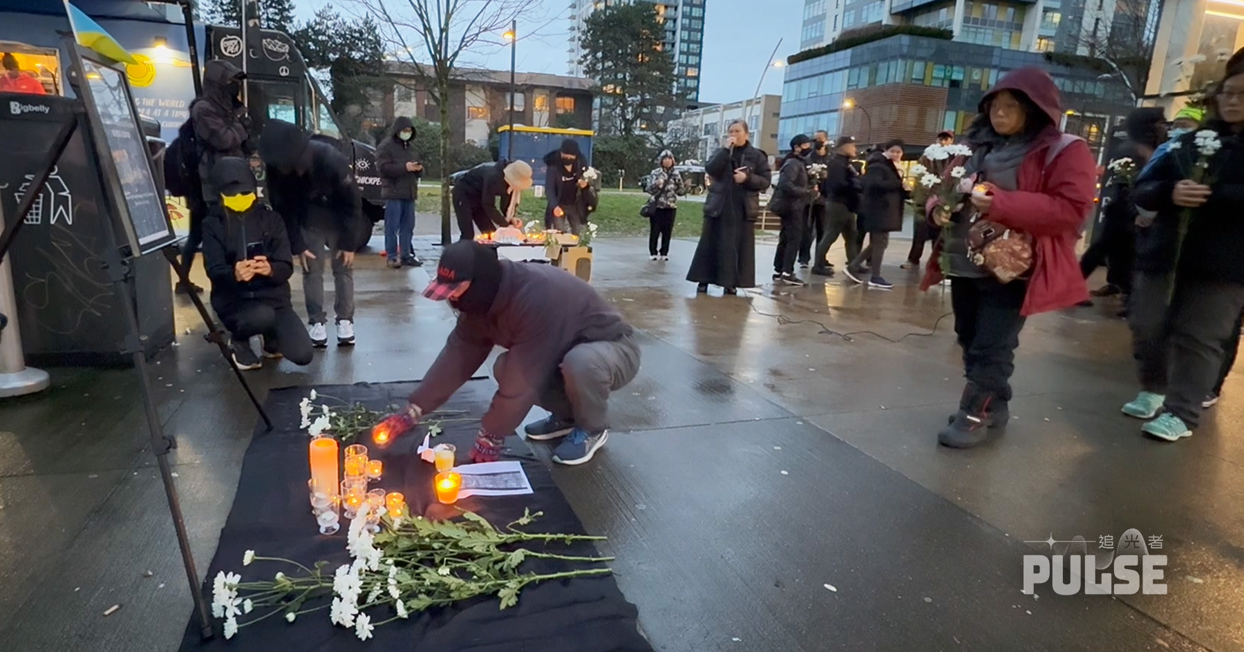 悼念會吸引不同背景人士到場,正在溫哥華攻讀的烏克蘭留學生Stephen前來向兩名陣亡港人致意,他說烏克蘭總人口中,75%失去親人,他及祖母的房子都被炸毀。他無法回家,否則將面臨失學,很可能連父母都無法見到。
