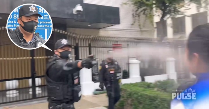 根據網上流傳的影片,一批中國民主黨成員周日(4日)來到中國駐洛杉磯總領館外示威,最少三名身穿戰術背心配戴隨身攝錄器及耳機的總領館保安人員,手持寫有中文字「洛城安保」的盾牌及胡椒噴霧在門外戒備,期間與示威者發生口角,其中一名保安人員突然拿起手上的胡椒噴霧趨前噴向示威者,連續噴了三人,之後意猶未盡再走出馬路追噴其他示威者。