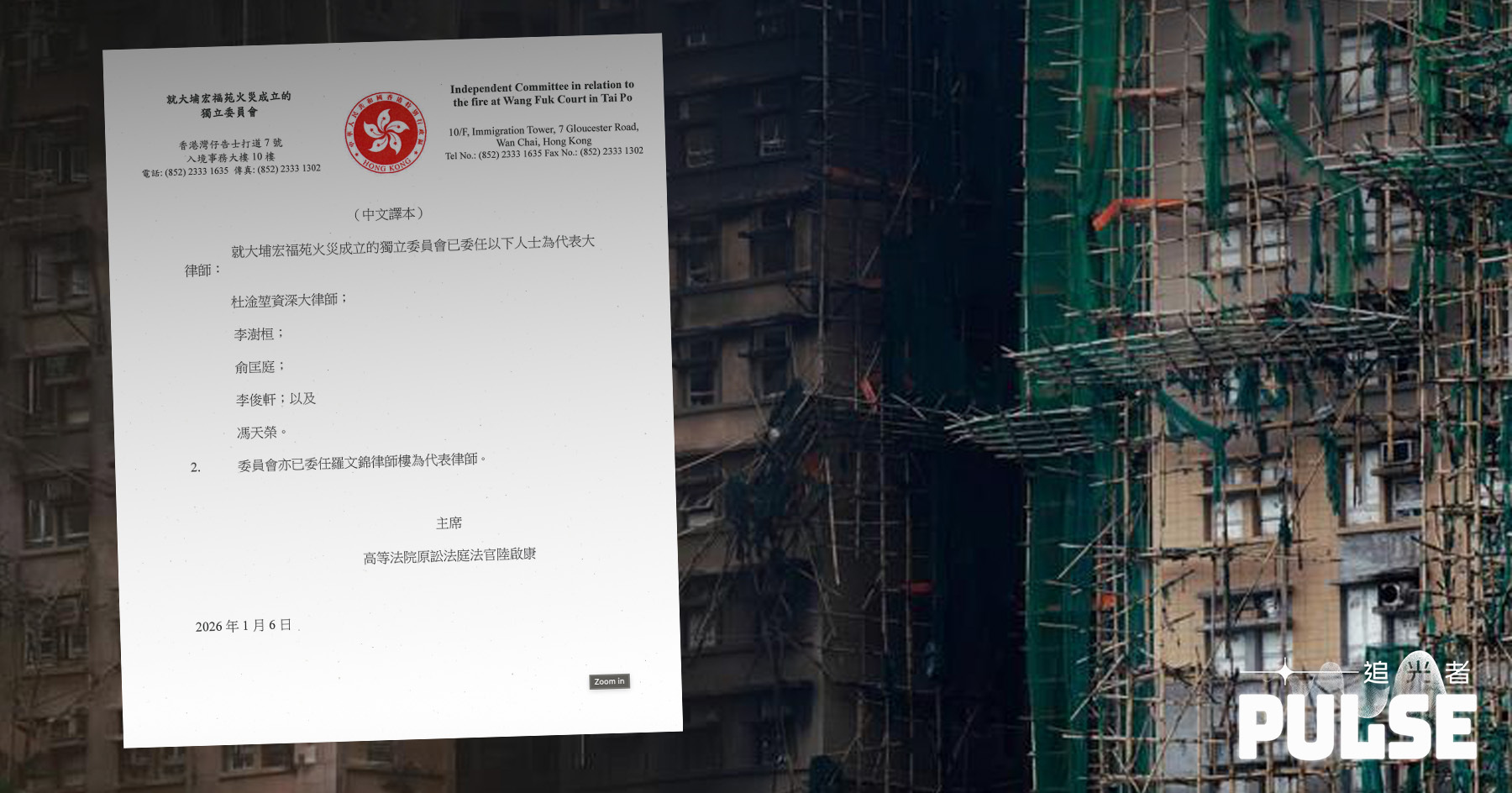特首李家超於上月12日公佈就大埔宏福苑大火成立獨立委員會,由原訟庭法官陸啟康出任主席,成員包括行會成員陳健波、港鐵董事局前主席歐陽伯權。輿論擔心獨立委員會沒有法定調查權力,最終能否找到真相成疑,亦令人擔心處理責任問題時,尤其是哪些官員或部門要問責等問題會避重就輕。
