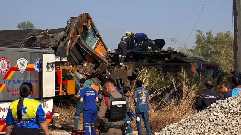 綜合傳媒報道,事發於當地時間周三早上9時許,一列載有195人、原定由首都曼谷開往泰國東部烏汶府的特快列車,駛至泰國東北部呵叻府時,突然被上方一個墮下的天秤吊臂擊中,列車隨即出軌翻側、繼而起火,有目擊者形容部分車廂儼如被吊臂「劏開兩邊」(sliced in half)。