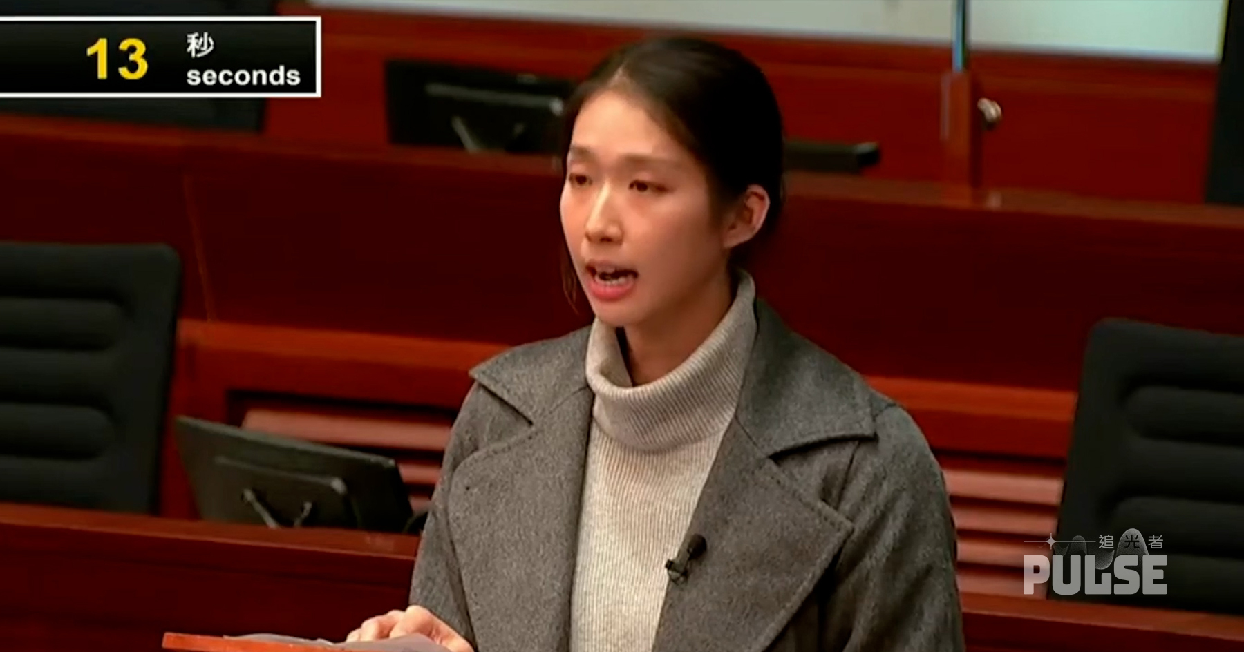 於首日會議,政府動議有關災後支援及重建工作的議案,幾乎全體議員「排大隊」等候發言,萬眾期待的江旻憓輪至下午近五時才能開腔。江穿上灰色外裝、束起長髮站起來發言:「主席,大埔宏福苑火災係香港人嘅集體傷痛……」江絕大部份時間望著早已預備的講稿,以手指逐行指着邊看邊讀,偶爾望一望代主席陳振英;至於聲線及節奏則平平,完全「零」抑揚頓挫,儼如小學生被老師叫背誦文章似的。