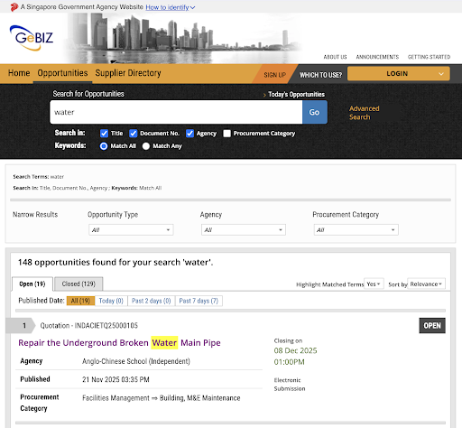 圖表 1:新加坡 GeBIZ 系統——透明、可搜索的採購市場