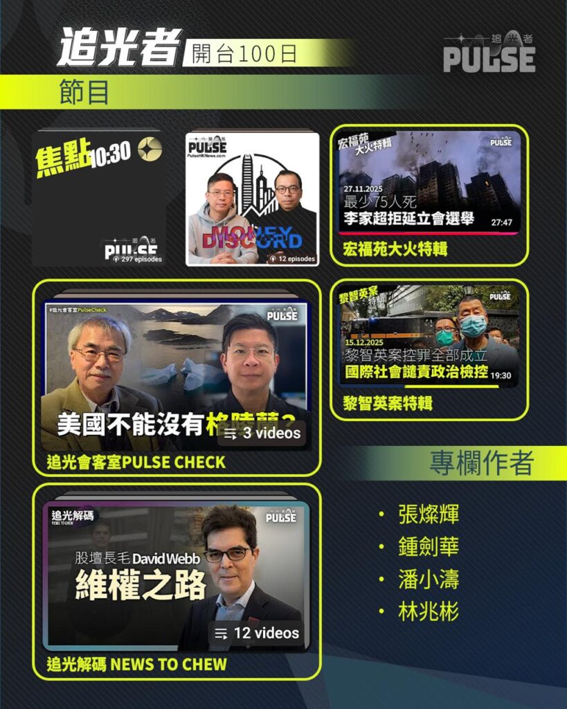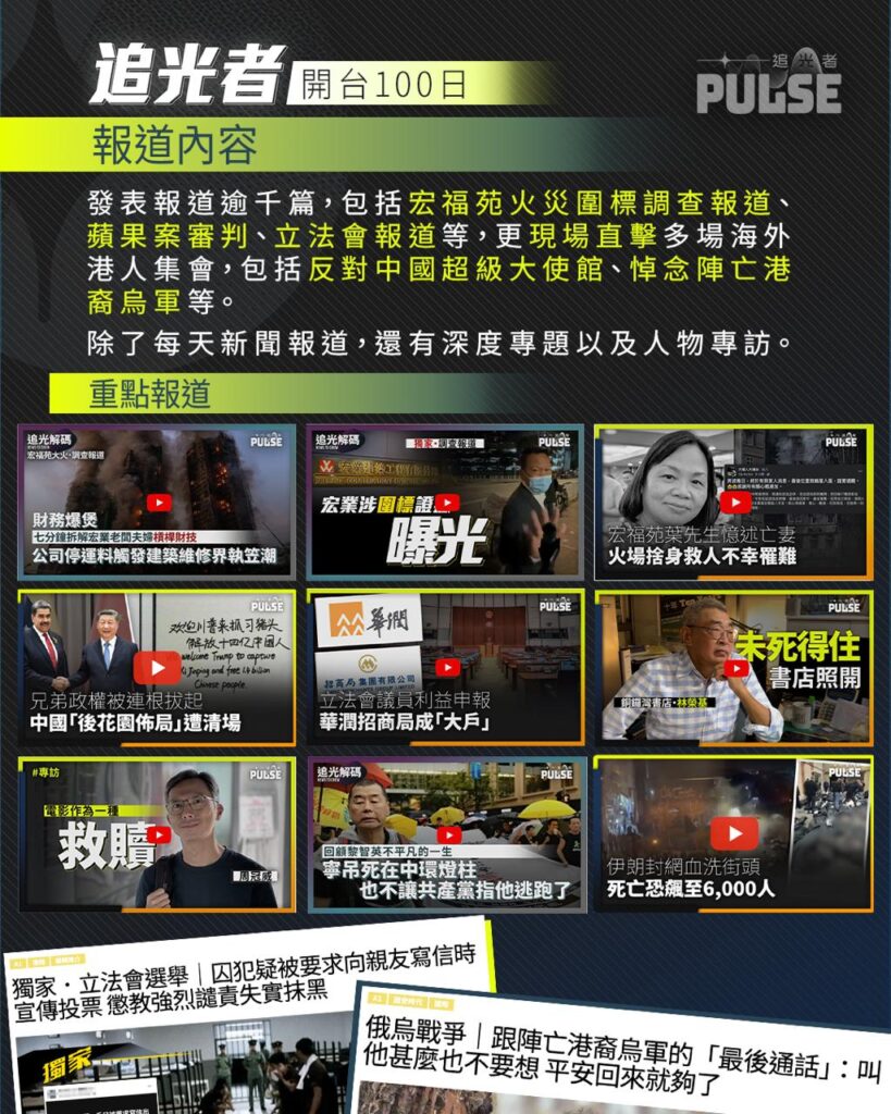 《追光者 Pulse HK》是一個全新的香港人國際新聞平台,為世界各地的香港人提供24小時新聞。