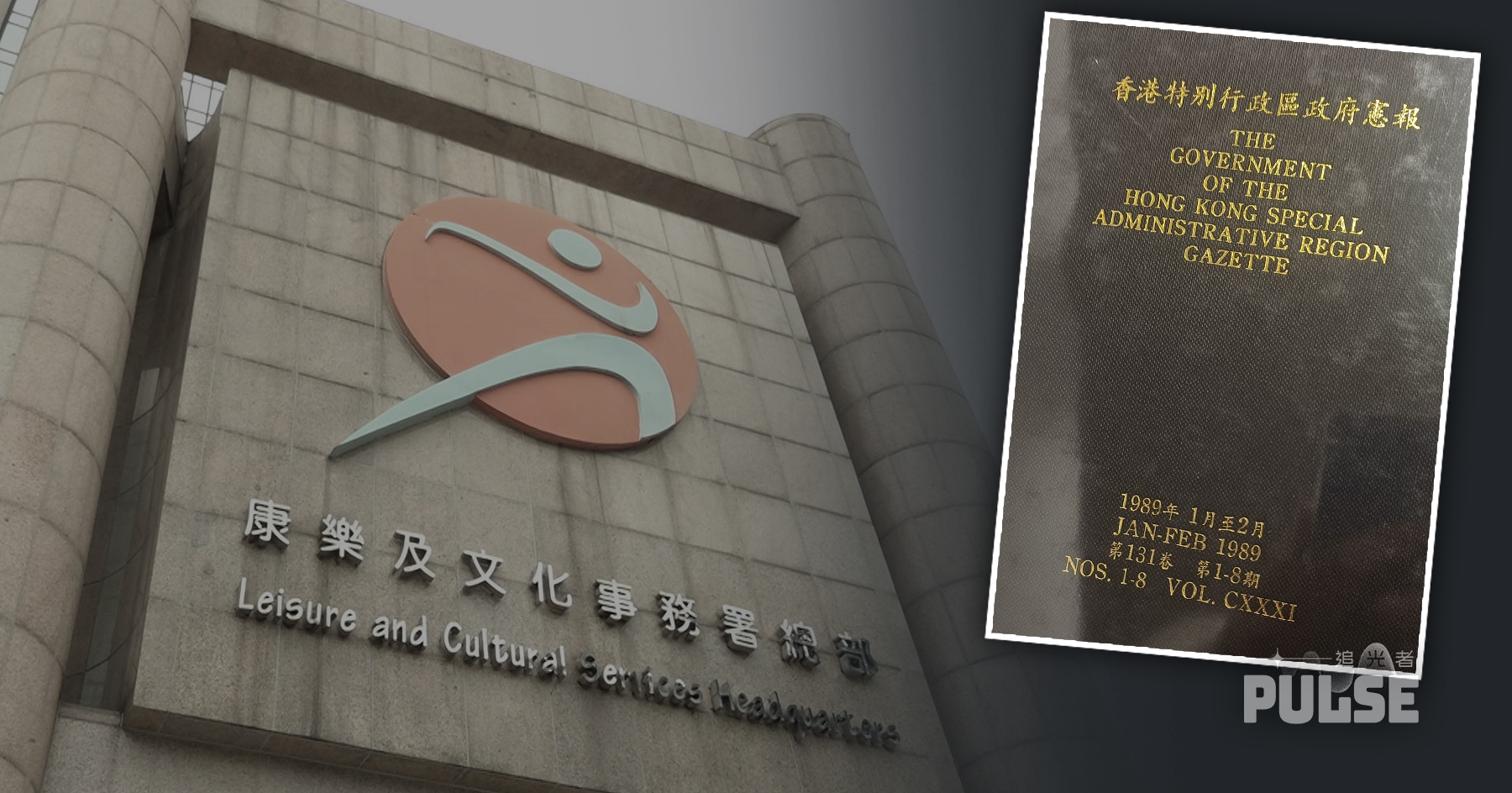89年憲報封面竟標示「香港特區政府」 康文署稱承辦商誤用相關字眼