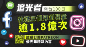 我們細小的團隊全賴廣大讀者的信任及支持,才能持續營運與報道。我們誠邀您訂閱《追光者》Patreon,尊享優先睇精彩內容,並有機會日後獲邀參加與編採團隊的網聚。請支持新聞自由,一齊撐起離散媒體。
