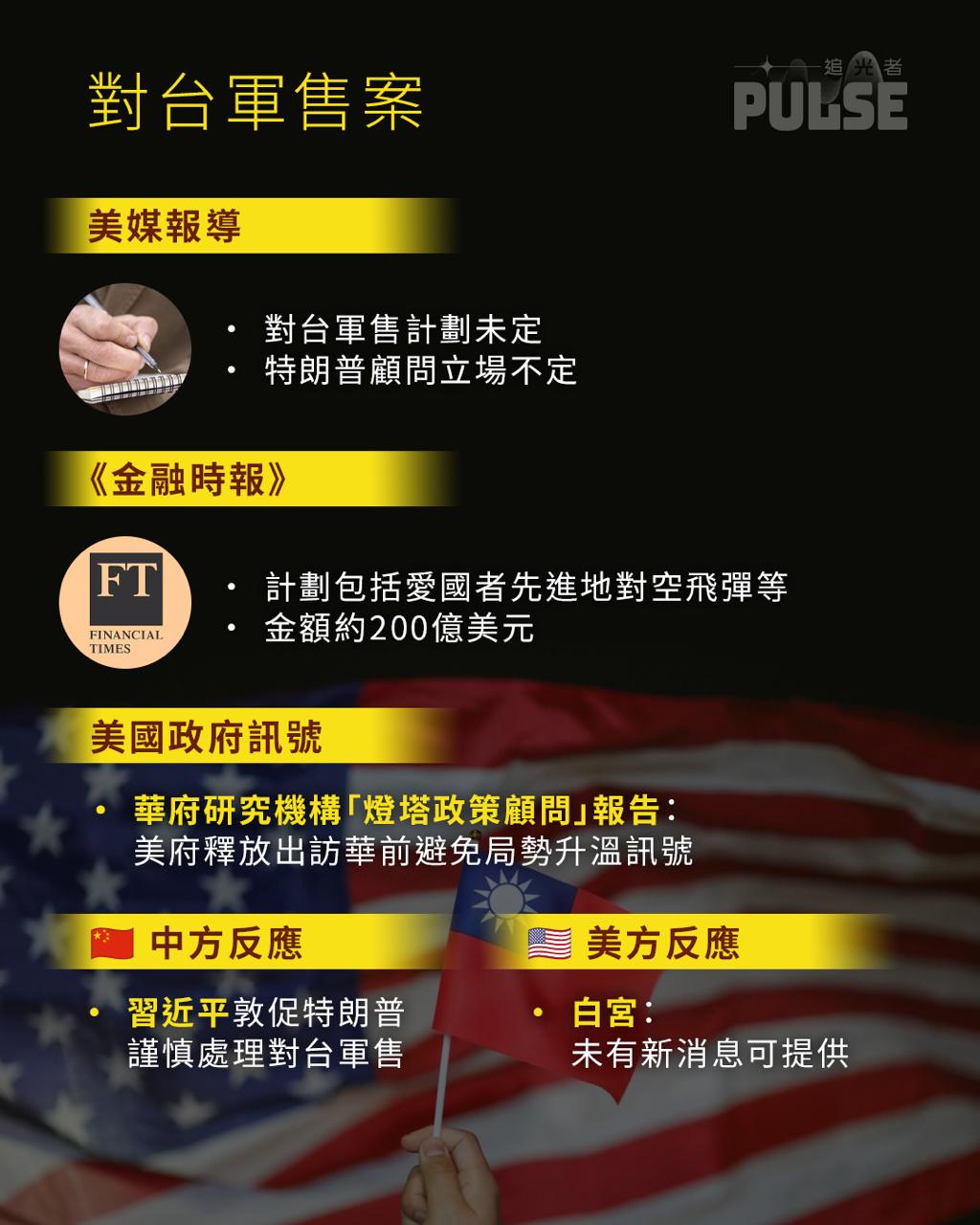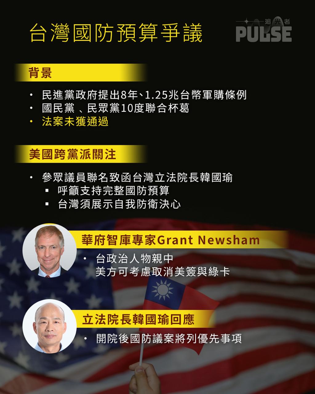 另一邊廂,美國新一輪台軍售案亦受中美角力牽制,中國國家主席習近平早前跟特朗普通話時,要求美方謹慎處理;與此同時,台灣民進黨政府的國防預算案,亦多度在立法院被藍白陣營聯手推翻,引起美國跨黨派高度關注。