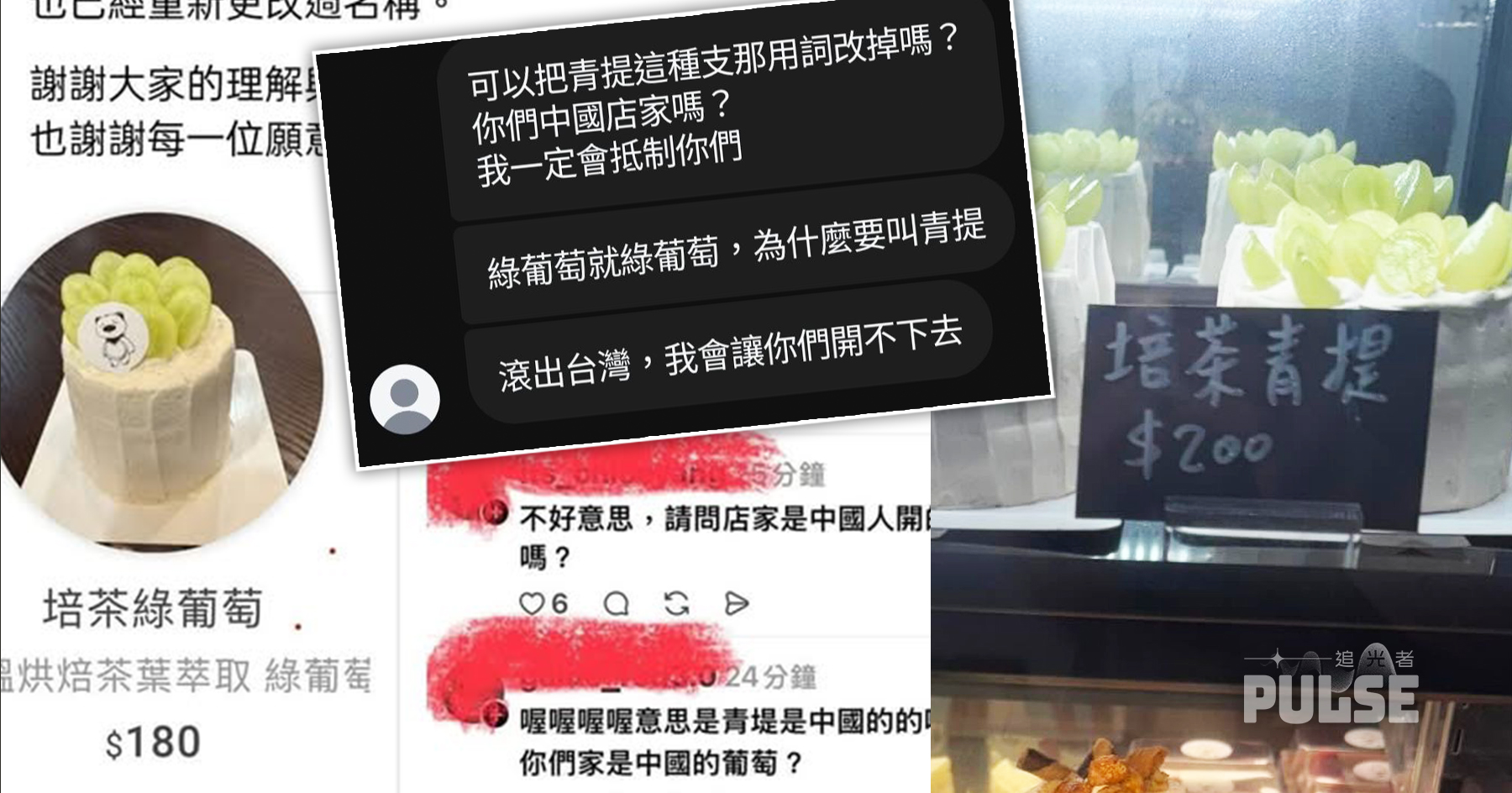 事件起因於高雄一間蛋糕專門店在社交平台分享產品時,使用「焙茶青提」作為甜品名稱,有網民隨即質疑「青提」是「支那語」,甚至留言反問「店家是中國人開的嗎?」風波迅速擴大,店家最終公開道歉,解釋只是順口用字,並將產品改名為台灣較常用的「綠葡萄」。