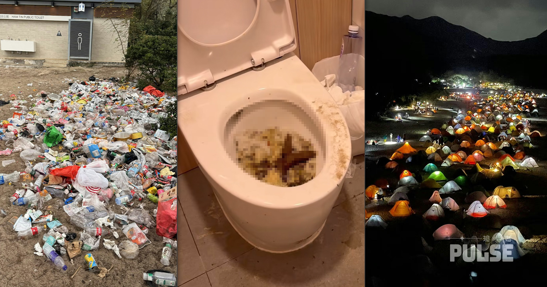 璀璨過後、美景背後,卻是令人噁心的一幕。有港人近日在社交平台threads發佈影片,題為「呢個係我喺香港有屎以來見過最污糟嘅公廁」,直擊咸田公廁蹲廁、馬桶全堵塞,大便和公仔麵混在一起清晰可見;洗手水糟無法去水,營友仍繼續洗漱;戶外垃圾隨處亂丟,猶如迷你堆填區。