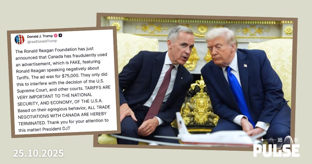 美國總統特朗普突然宣布,即時中止與加拿大的所有貿易談判。原因是一則加拿大政府資助的電視廣告。加拿大總理卡尼表示,已無法改變美國新的貿易政策,加拿大只能尋找其他貿易伙伴,包括亞洲的經濟強國。