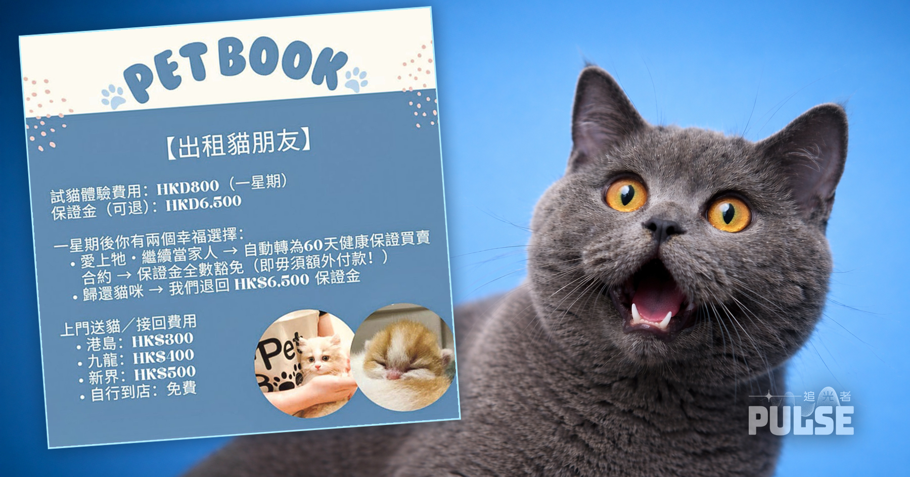 租借服務在香港時有出現,但租借的往往是物件。不過有寵物店近日在社交平台發帖文,宣傳「出租貓朋友」。出租貓收費一周為800元 ,承租人另需支付6500元保證金,出租一周後可決定購買或歸還。漁護署指出此做法屬違法,而店主亦即時刪除帖文。台灣幾年前亦有網民討論租動物事宜,有台灣人向《追光者》表示反對這個做法,擔心會出現虐待動物情況。