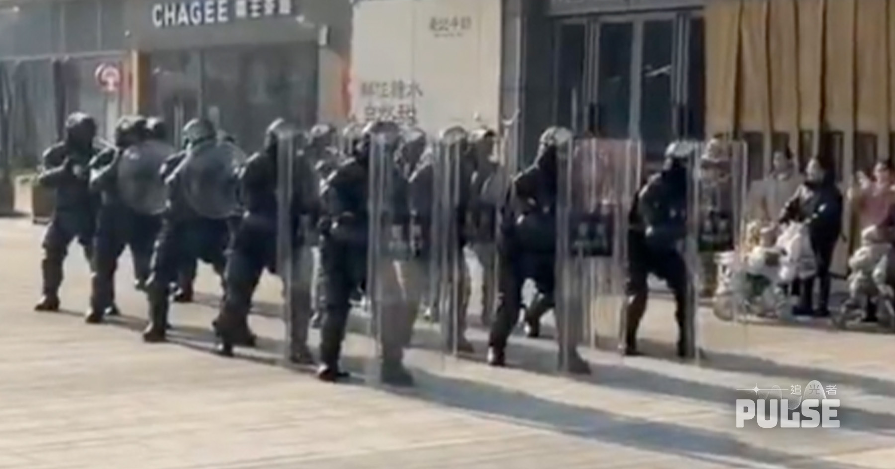 社交平台近日流出多段影片,可見四川成都一個商場外面,有防暴警察日間演練圍捕、驅散及街頭封控;西安雁塔也有特警帶着透明防暴盾、抓捕叉、衝鋒槍和軍警犬,晚上在繁華的商業區高調巡邏,陣勢儼如進入戰備狀態。