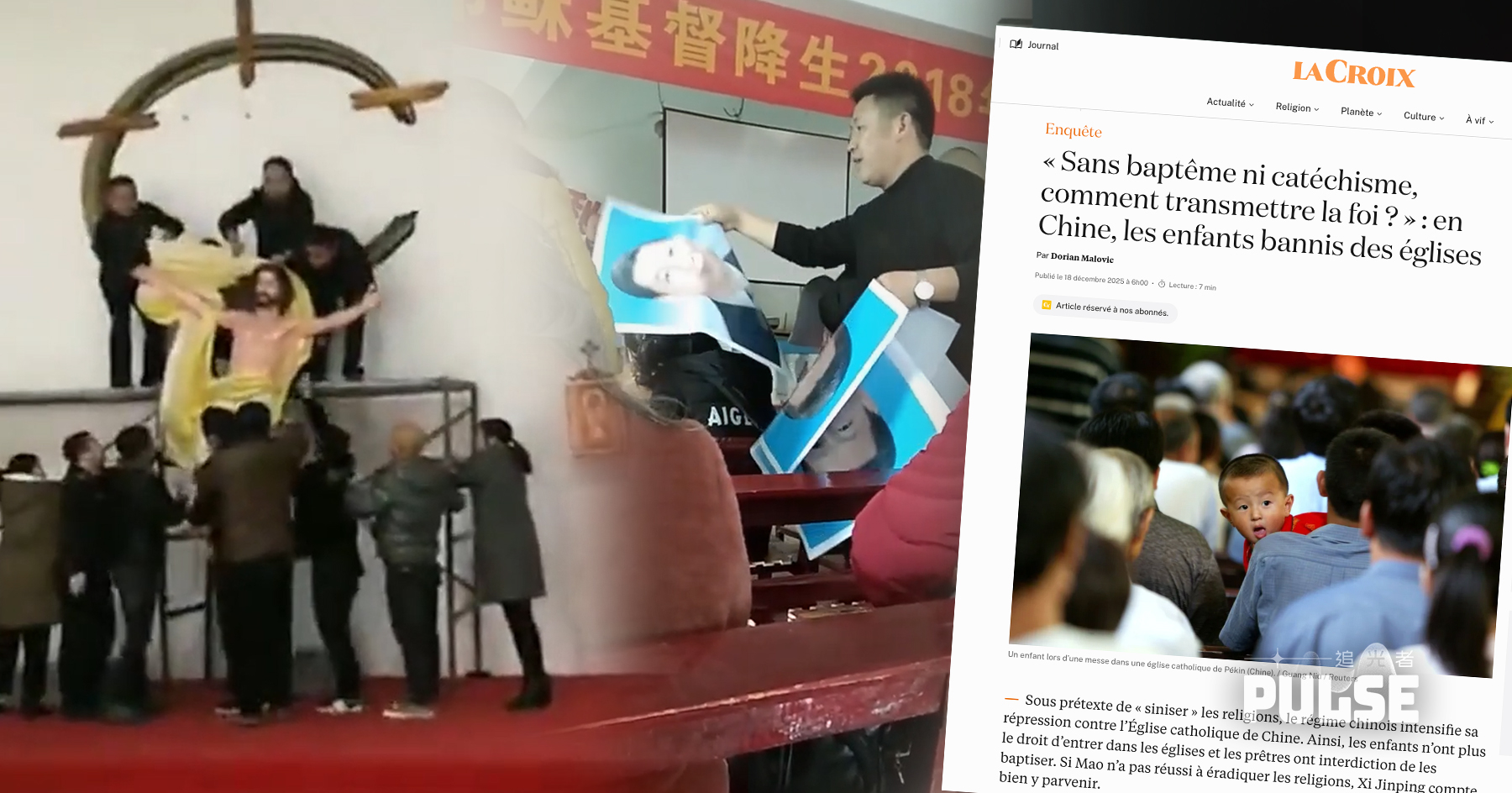 中國政府持續推動「宗教中國化」措施,嚴格限制宗教活動,而天主教會成為重點管控對象。法國天主教媒體《十字架報》指,北京禁止未成年人士進入教堂及參加宗教課程,神父亦被限制為兒童施洗。報章社評批評,中國長期以「愛國」和「忠誠」等政治口號約束教會,如今更進一步干涉信仰自由。