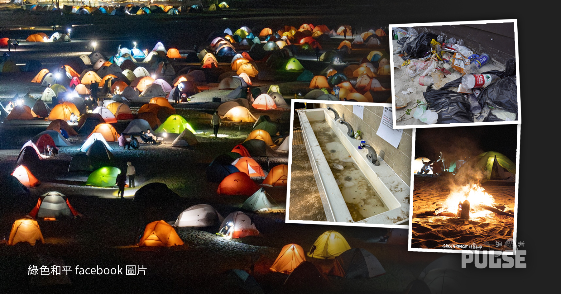 綠色和平年初二(18日)時實地統計,當晚在鹹田灣及西灣分別錄得450個和135個帳篷,前者的帳篷數目更遠遠超出漁護署官方建議的「大型營地」50個營位數目9倍,為當地環境造成負荷。他們又指,漁護署職員僅在日間向遊客作宣傳及呼籲,因此入夜後便出現各類非法的破壞環境行為,包括在沙灘上生火、亂拋垃圾等。即使有遊客將垃圾丟進垃圾桶,但現場遊客過多,政府加設的垃圾桶亦未能消化,結果依然是垃圾滿地。