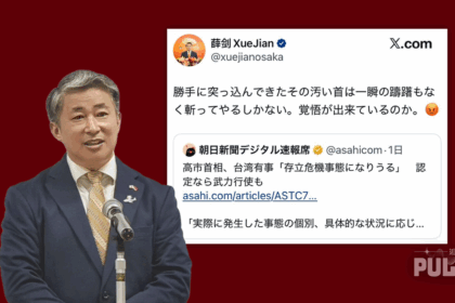 高市早苗稱台海衝突或影響日本存亡 中國駐大阪大使揚言斬頭 高市:無意撤回