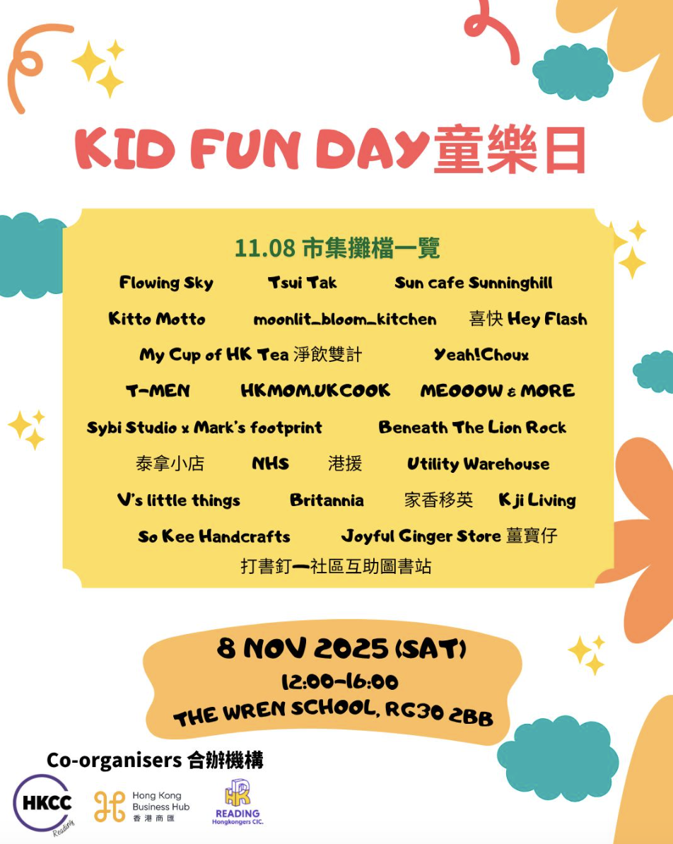 英國雷丁Kid Fun Day童樂日暨市集周六舉行,免費入場,唔洗登記。同日早上,伯明翰港人組織舉辦《英國解讀系列第二講》,鍾劍華博士現場同大家一齊了解英國政黨制度、各大政黨民生及移民政策等。