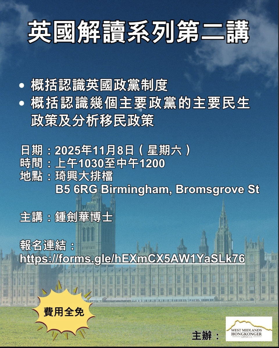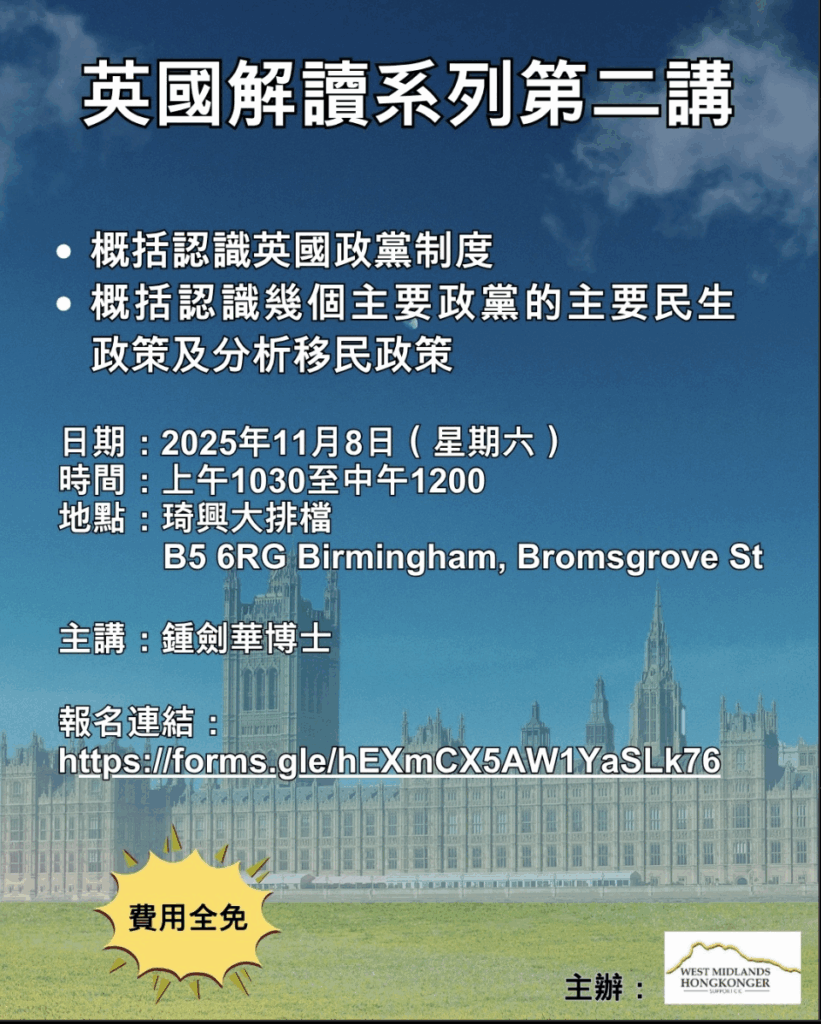 主辦 : UKWR 及 West Midlands HongKonger Support CIC
