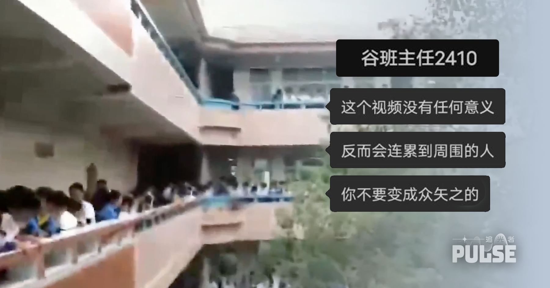 學生在校內抗議的片段,在社交平台迅速流傳,負責拍攝的學生其後收到班主任「關注」,要求盡快刪片。班主任向學生表示,「抗議沒有任何意義,只會被人看笑話」,之後更警告拍攝者「不要傳播負能量,不要把小事鬧大」,並強調此舉可能「連累周圍人」,甚至指對方「若享受當英雄的快感,只是在被人取笑」。