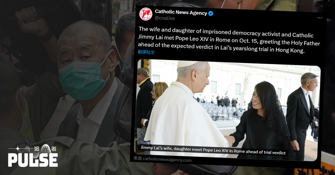 黎智英案料即將宣布裁決之際,黎智英的妻子及女兒周三(15日)在梵蒂岡拜會教宗良十四世。教廷官方傳媒相片顯示,黎智英的妻子李韻琴與教宗握手致意,她和女兒黎采和教宗交談期間,兩人均展露微笑。這相信是港府以港區《國安法》拘捕扣留控告黎智英後,現任教宗首度接見黎智英的家人,料對包括英國首相施紀賢(Keir Starmer)在內的西方國家領導人造成壓力。
