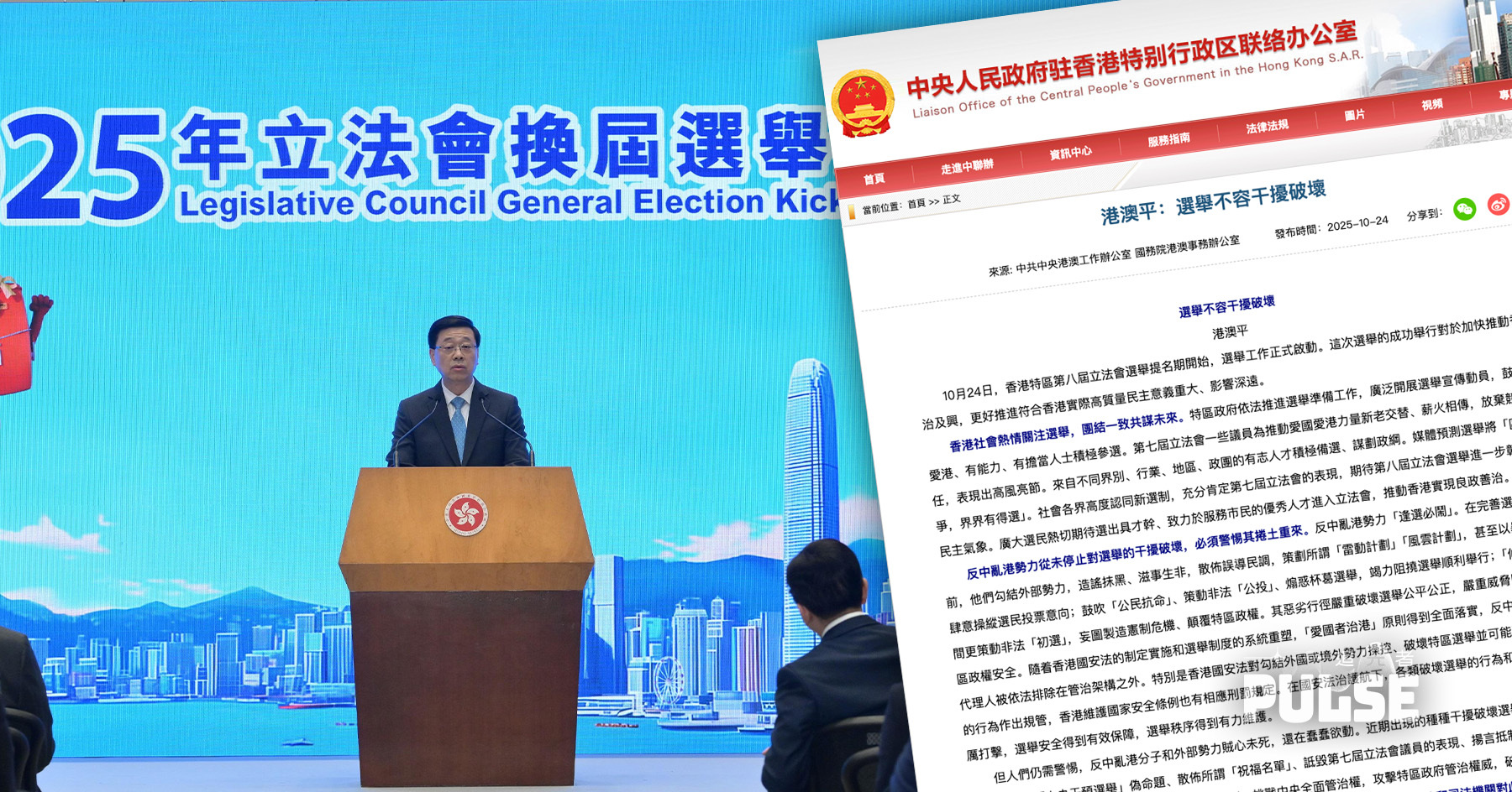 香港特區第8屆立法會選舉提名期今日(24日)正式展開,國務院港澳辦凌晨以署名「港澳平」發表評論文章,強調要「警惕反中亂港勢力」企圖破壞選舉,並批評「祝福名單」、「詆毀第七屆立法會議員表現」等言論。有前區議員估計,港澳辦刻意不讓外界談及「祝福名單」,主因是因為中國政府不希望選舉形象,有「中國干預」的成份。