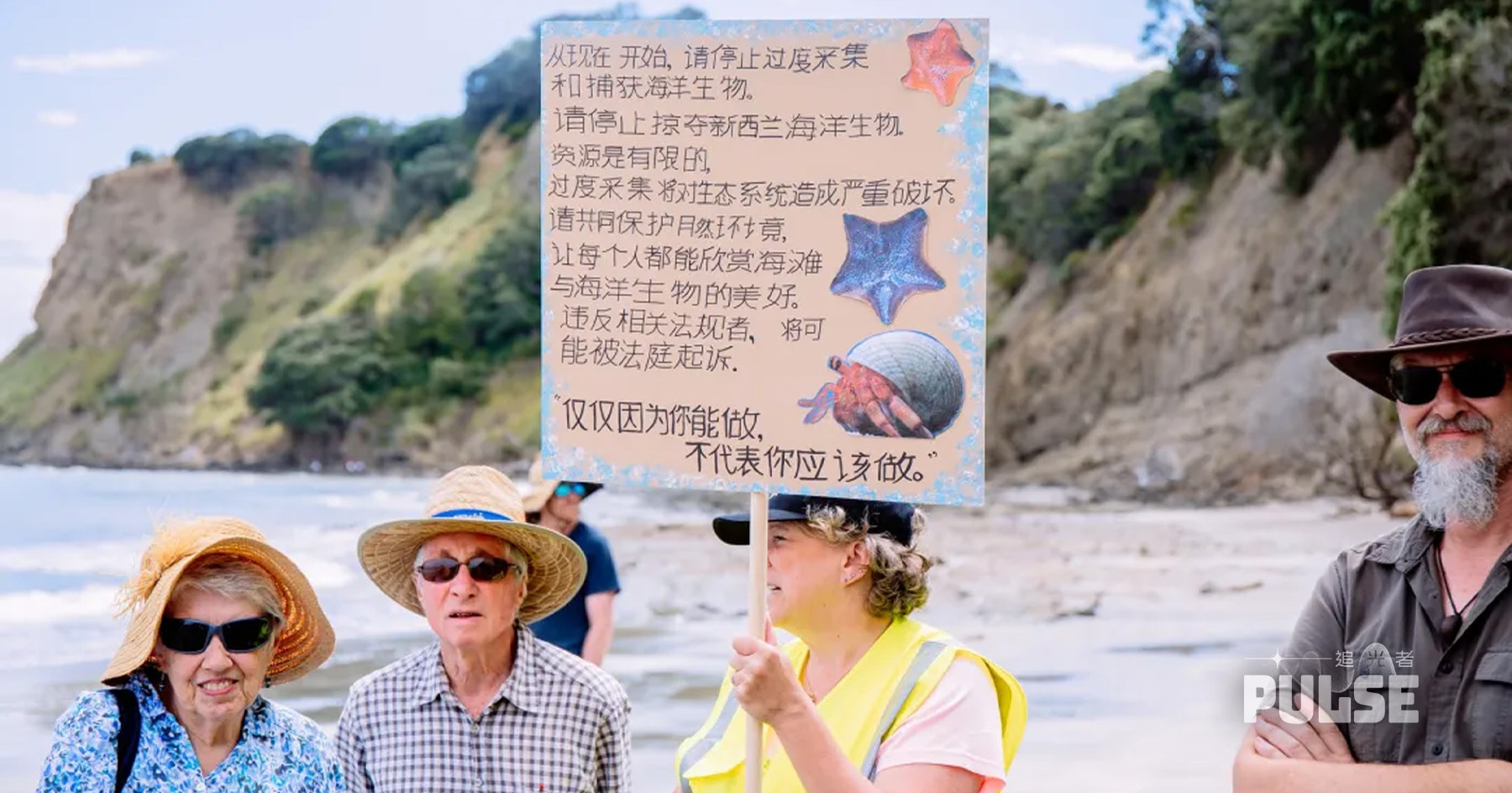 新西蘭奧克蘭北部的旺阿帕勞阿(Whangaparāoa)半島,近日成為當地環保團體與採集者之間的「戰場」。隨着中國社交平台「小紅書」及TikTok湧現大量採集海產攻略,大批中國移民及遊客循指示蜂擁而至,將岩池內的海洋生物搜刮一空。當地居民於是高舉簡體字標語,提醒中國人「停止掠奪」。