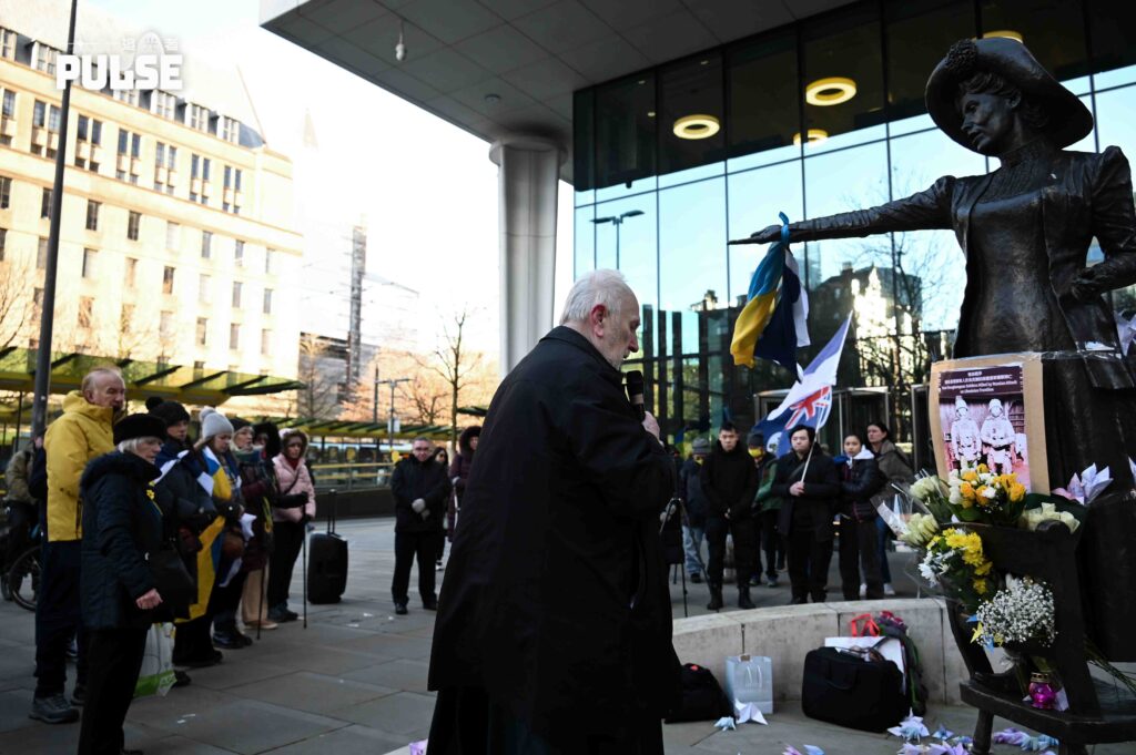 英國烏克蘭自主東正教會(UAOC in GB)牧師帶領在場參加者頌唱烏克蘭傳統詩歌,祈求兩名烈士安息,並感謝他們為守護烏克蘭、捍衛民主自由而選擇遠離家園作戰,甚至獻上性命:「他們為持續對抗壓迫者付出了寶貴性命。願他們的犧牲成為兩地與民族之間深厚情誼的又一見證。願他們的精神長存、永垂不朽。願榮光歸烏克蘭!願榮光歸香港!英雄不死,阿們。」